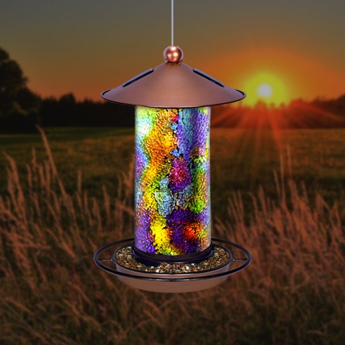 Solar Bird Feeder for Outside - Mosaic Copper Outdoor Hanging Lantern